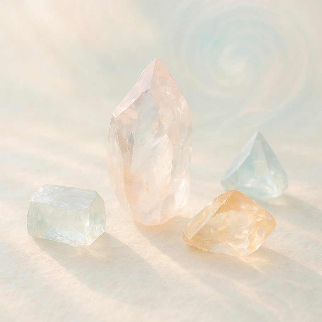 Заплющивши очі з кристалом у долонях, можна відчути, як кольори перетікають у відчуття, стають музикою без звуків. Вони ніби шепочуть про м’якість, що прихована в прийнятті, в легкості буття, яка не тисне, а піднята прозорою хвилею спокою.