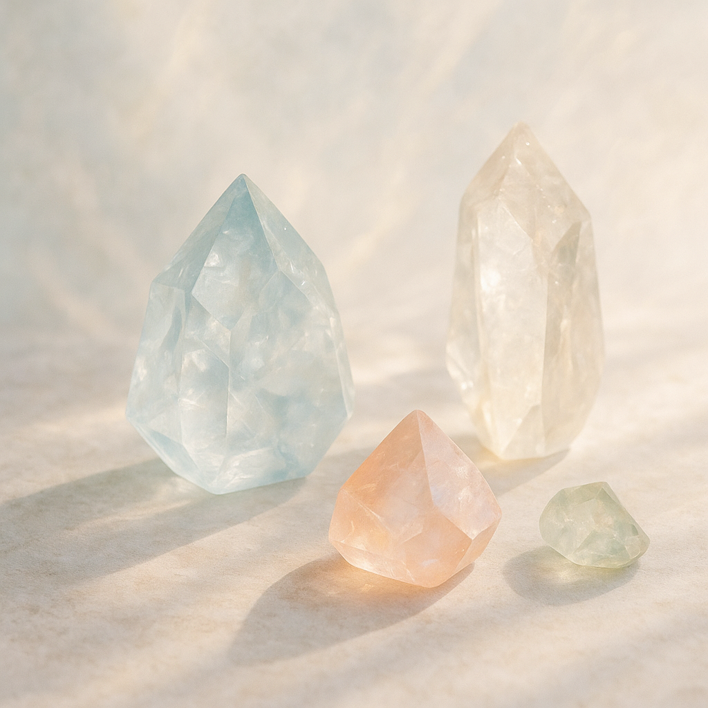 Іноді в тиші кімнати, під м’яким світлом, перед нами лежить кристал — здається, застигла частинка світла, зібрана у форму. Це не просто камінь. Це простір, у якому відбивається щось глибше, ніж його поверхня. Кристал мовчить, але його мова — це відчуття, простір та внутрішні відгуки, що прокидаються всередині. Він стає дзеркалом, в якому ми можемо впізнати власний внутрішній стан — не словами, а ніжним шепотом уваги. Саме в цьому обіймі тиші і світла кристали розповідають свої історії — про нас, про те, що ми є зараз.